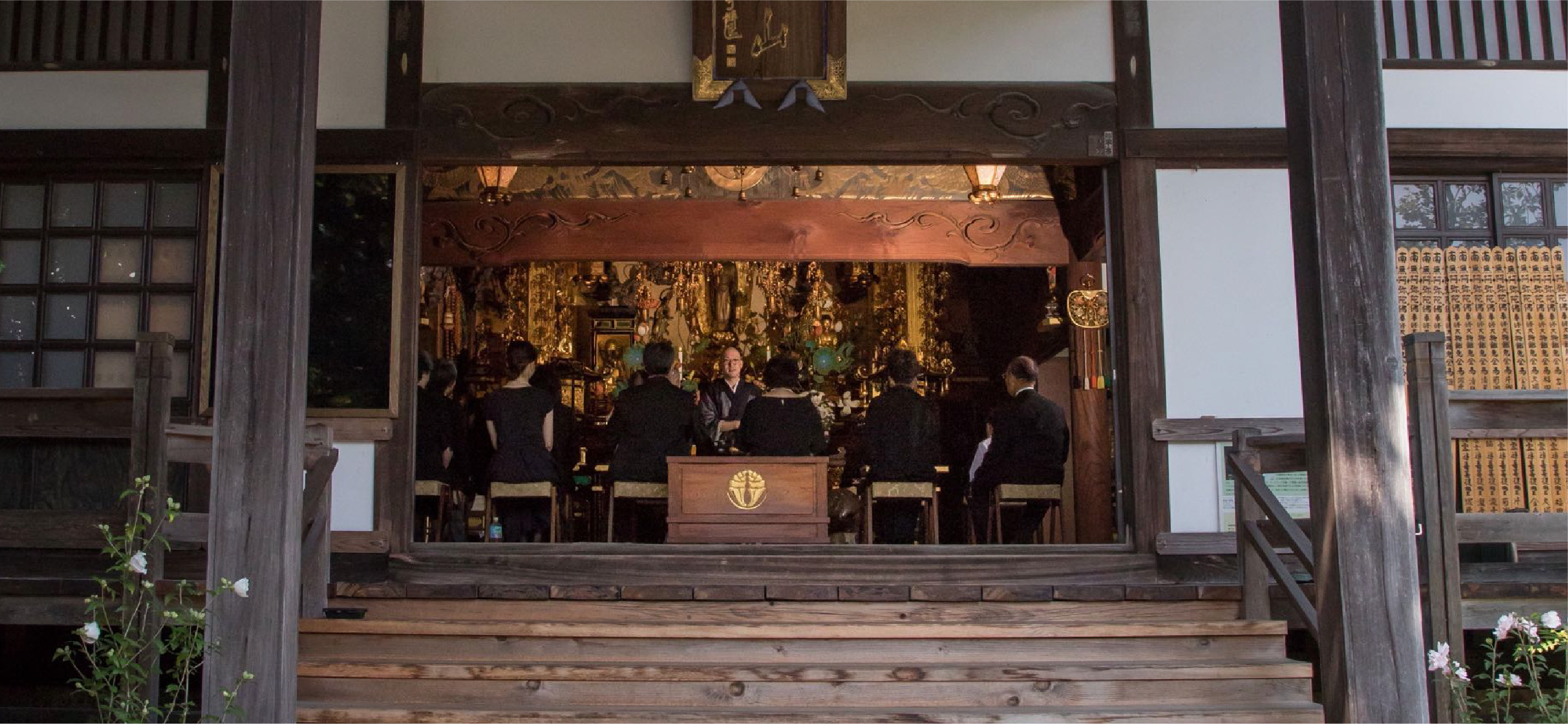 松島龍戒師の独唱、井上住職の独唱、両師の合唱へと声を重ね、最後はご参列の皆様とともにお唱えいただきます。
